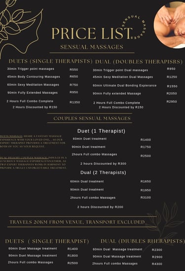 Unwind together with synchronized massage techniques that soothe the body, calm the mind, and create a shared moment of pure relaxation.